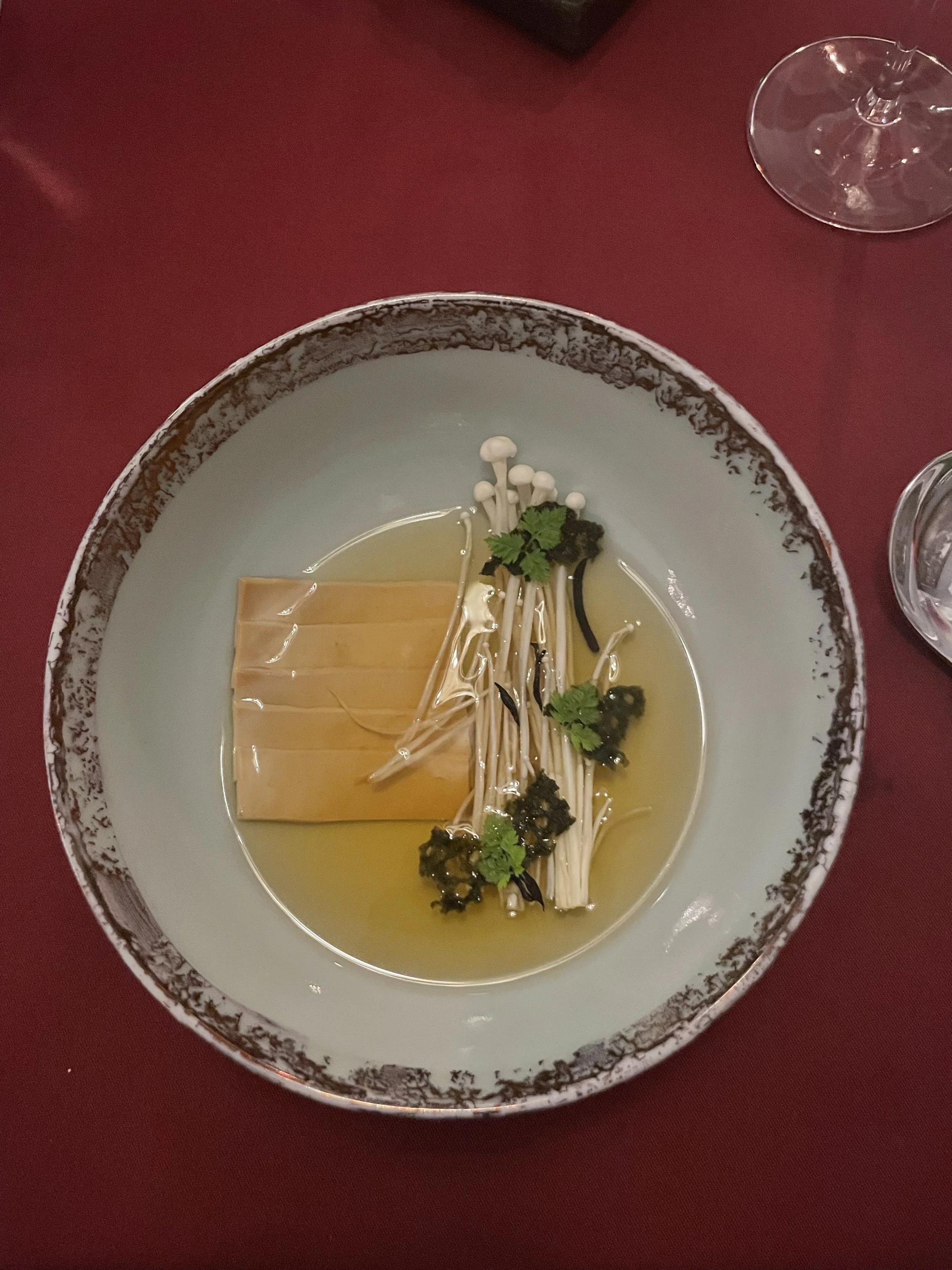 Tofu and mushrooms in broth at Aperitif